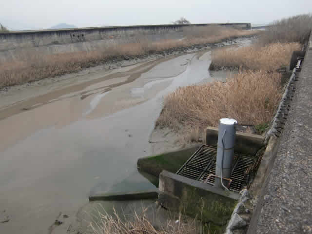 は田んぼの水没を防ぐ重要な役割を担っています。特に満潮時は、曽根干潟からの海水の逆流も防がなければなりません。目立たない存在ですが、なくてはならない施設です。