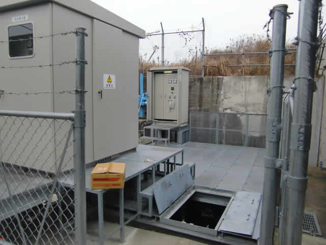 北九州空港へ向かう道路の橋の下で、朽網川と曽根干潟の境にあるポンプ施設です。