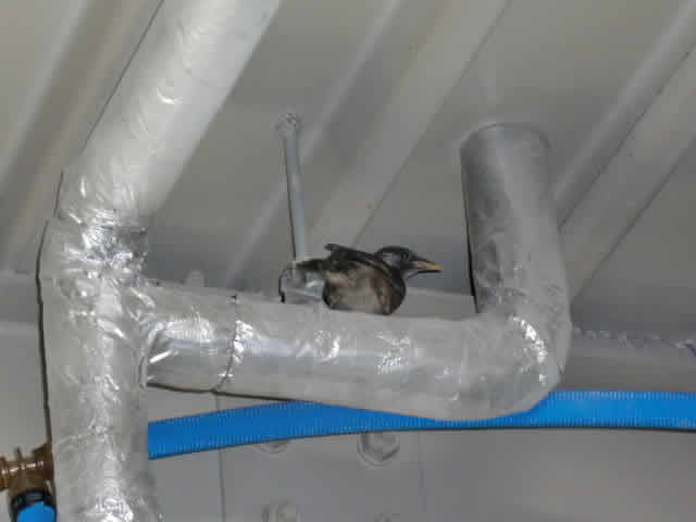 急いで駆け付けますと、鳥が迷いこんでいるではありませんか![]()