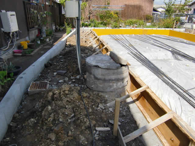 基礎工事中でした。基礎工事の邪魔にならぬよう作業をさせて頂きます。