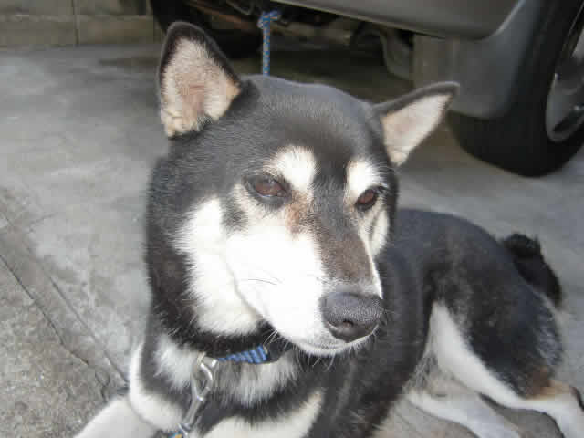 と、ここのお宅で飼われている男前の芝犬の陸君![]()