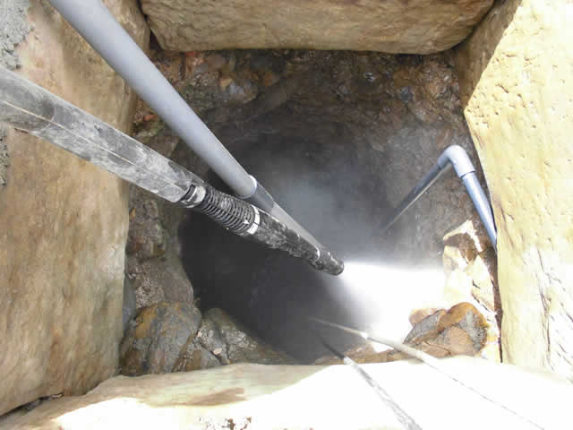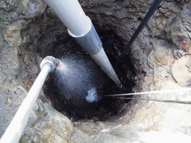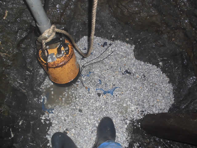 洗浄しながら底部に到着。近年、所有者の方のお父様が掃除をされていたとのことで、その時の底に敷かれた砂利がゴロゴロと。