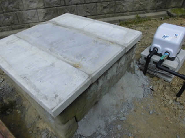 井戸蓋は土留め用のコンクリート製の板を活用させていただきました。