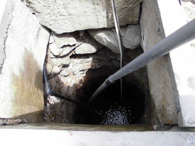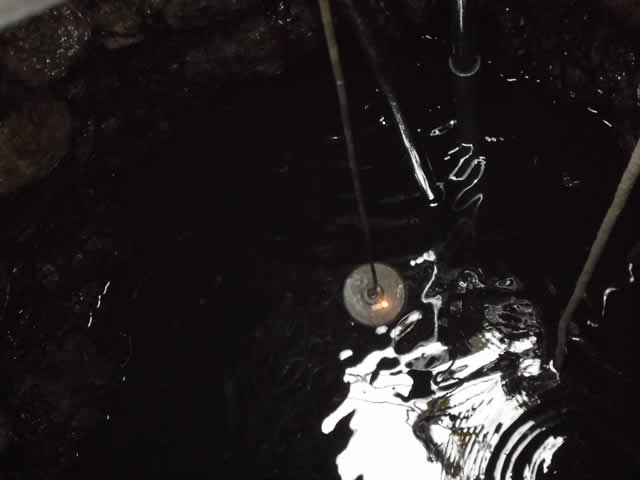 中を洗浄します。コンクリート製の土管のない時代に築造されたのか、井戸端は大きな岩で囲い、内部は石垣、底部付近では岩盤を掘りぬいており、少なくとも昭和以前に築造されたと思われます。今後はこんな形の井戸も見られなくなっていくのでしょうか。