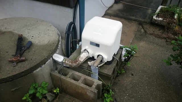 16年前に取り替えた浅井戸ポンプです。その間何事もなく稼働してたのですが、ファインセンサーの不良でした。外観、先の事を見据えての更新となりました。