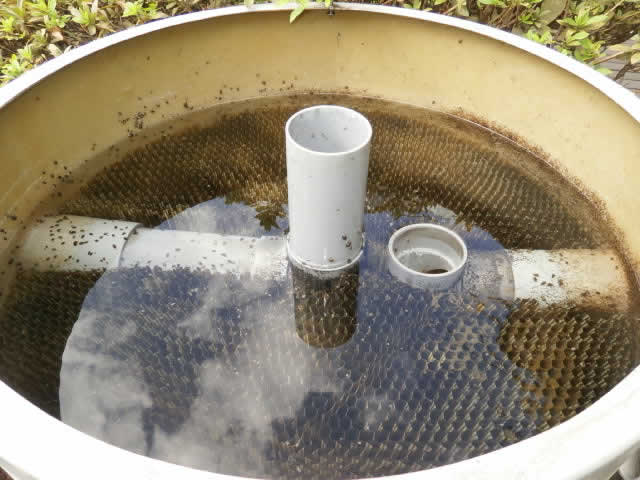 少し年期が入っていますが、池の隅でしっかりと役割を果たしています![]()