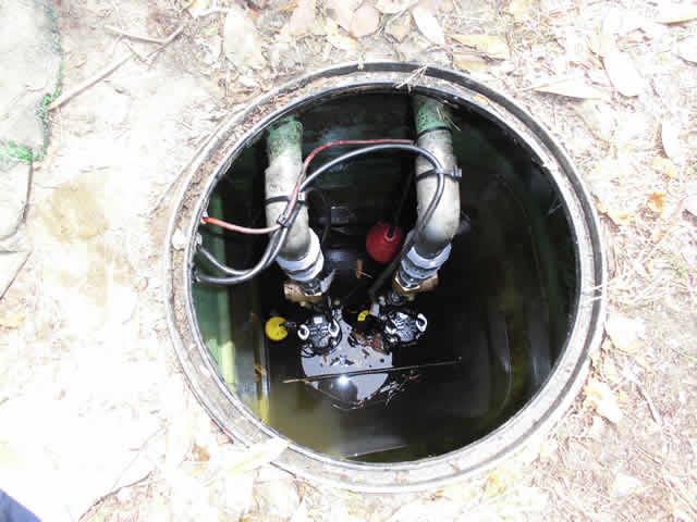 このマンホールの下に排水をくみ上げるポンプが付いています。