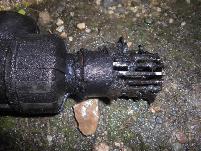 引き上げたジェット部も…ストレーナ部になにやら付いています