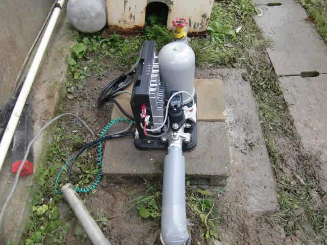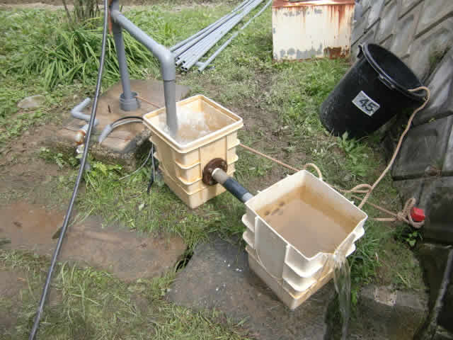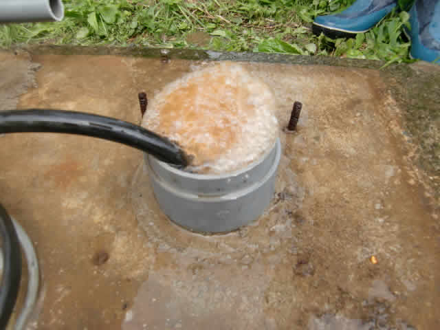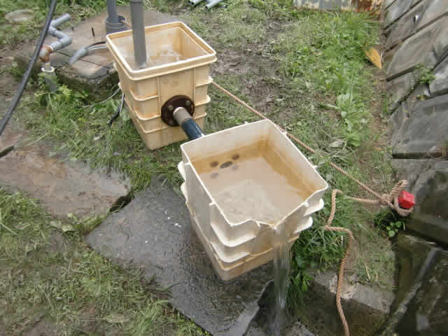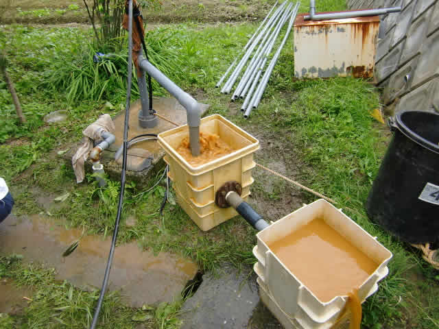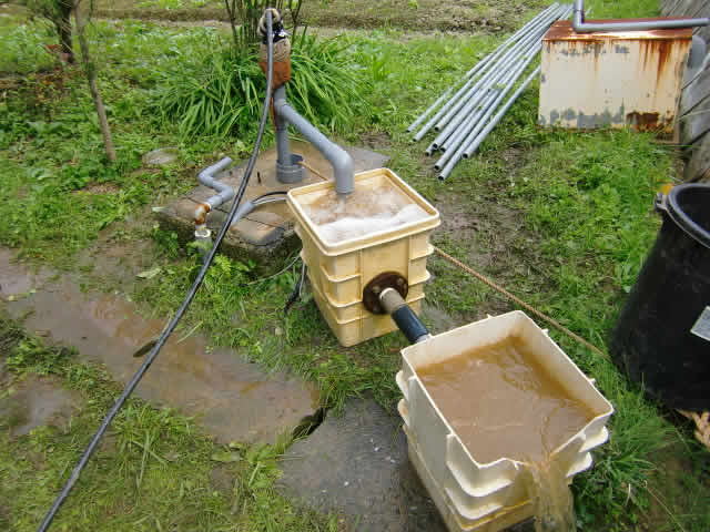 掃除用の揚水管を挿入した後、エアリフトで水替えです