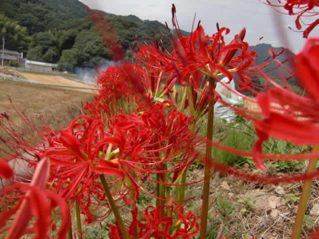 そして、田んぼの畦に誇らしげに並んで咲く秋の風物詩彼岸花が、撮ってと言わんばかりに満開だったので『それでは
