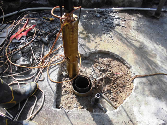 水中ポンプの不良と、ポンプ地上部までの絶縁不良が見られました。