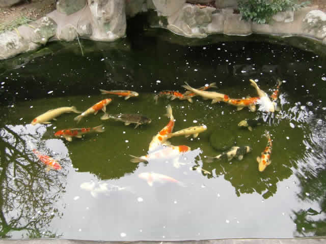 「最近アオコが発生して池の水が濁りせっかくの鯉が見えない」
