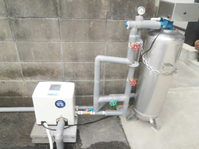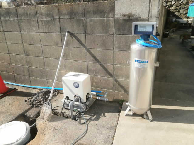 深井戸水中ポンプの設置作業も終わりまして、今度は濾過装置の設置ですNEW