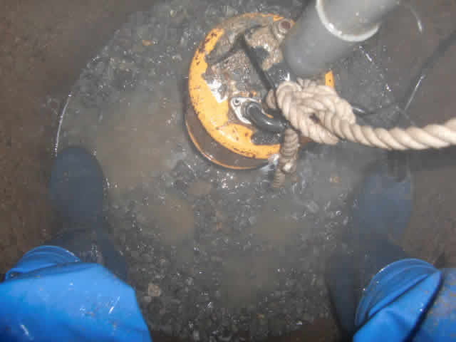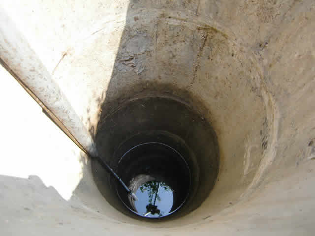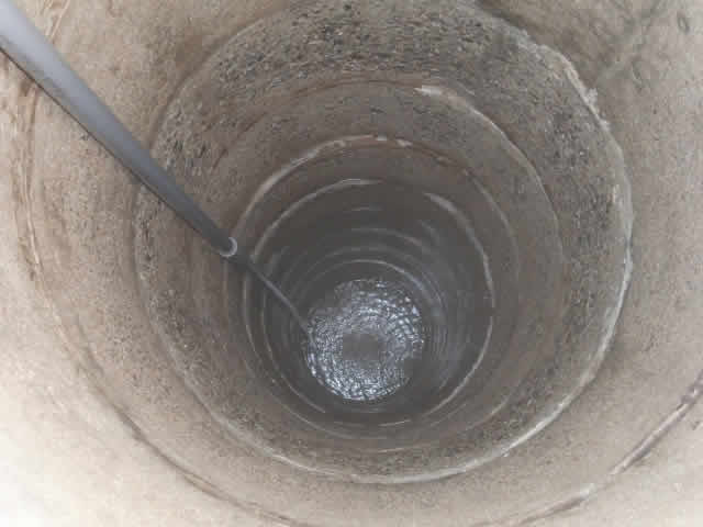 高圧洗浄機で井戸側を洗浄してゆきます。左側が清掃後