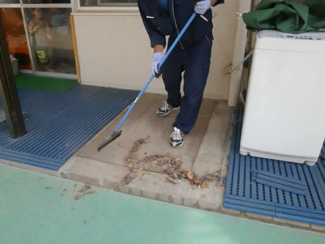 はい、社内でも几帳面な山口氏が掃き掃除![]()