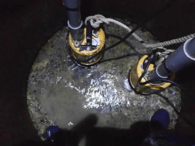 井戸のマンホールの上には分厚い鉄板が乗っています![]()