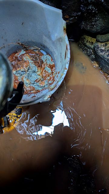 底部は粘土層なのか長年の土が堆積したのか、足を取られるどころか、膝上までしっかりと埋まりました。