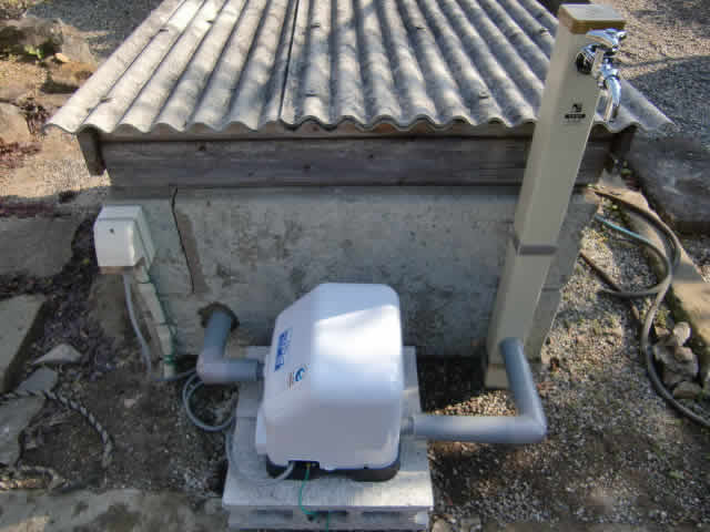 しばらく使用していなかった古井戸にポンプを据えて庭の草木の水撒きに利用したいとの事でした![]()