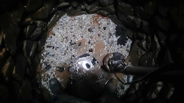 問題は底を浚う作業です。水を水中ポンプで汲み上げいざ!瓦礫が…