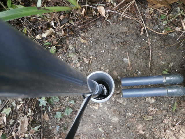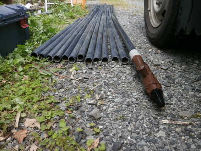 配管をつなぎながら、ゆっくりとポンプ部を井戸に挿入して行きます。