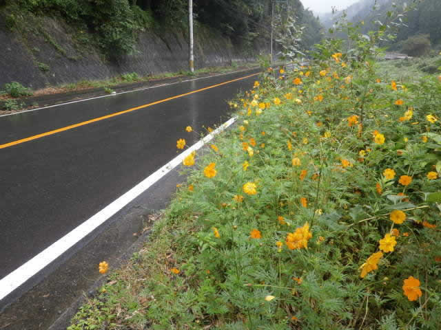道路沿いに咲いているコスモスが秋の気配を感じさせます![]()