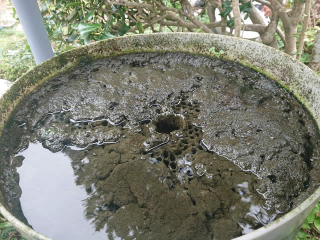ヘドロを取り出し移す時には『ペチョ!』と顔に飛んできます。