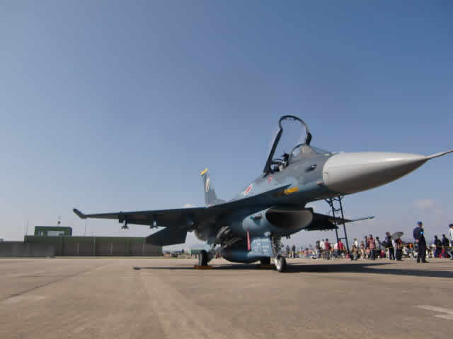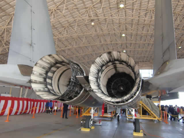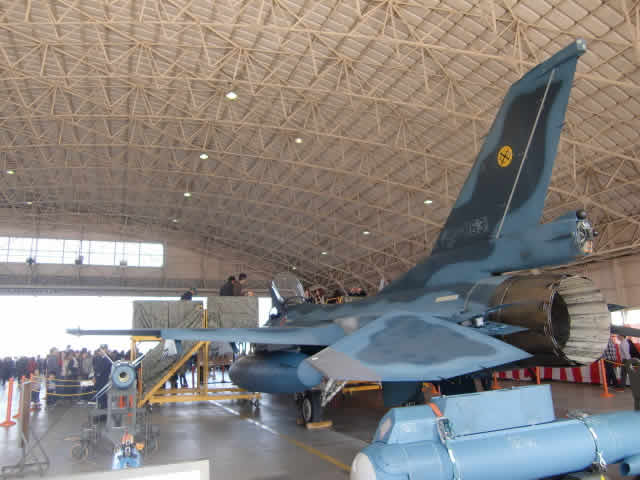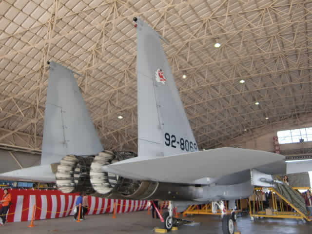 展示棟にてF15イーグルとF2バイパーゼロが展示