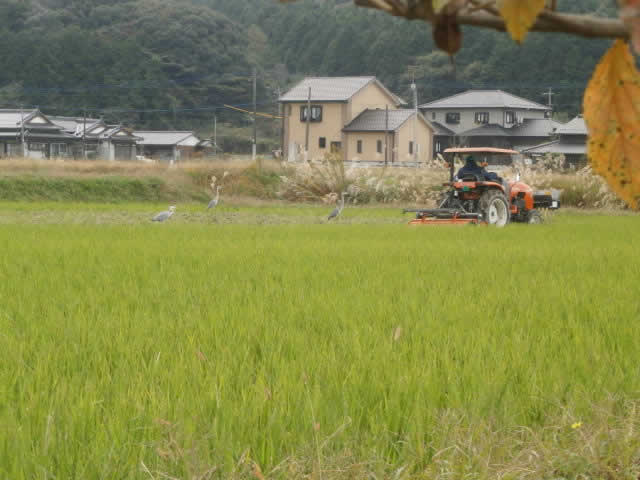 と、作業中ですが、ふと外を見ますと目稲刈り後の田を耕すトラクター音が耳るんるん